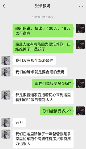 18万→5万!张卓毅妈妈聊天记录:能接受5万赔偿,家里房贷压力大
